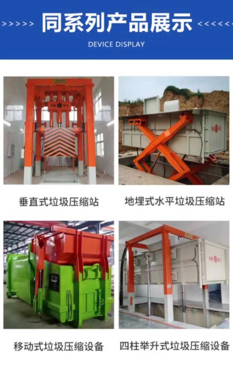 JY-3160 水平式四柱舉升垃圾壓縮設備用于對城鎮居民生活區、學校、醫院、公園景區、廠礦和機關單位的生活垃圾以及固體廢棄物的收集、壓縮減容和封閉轉運。